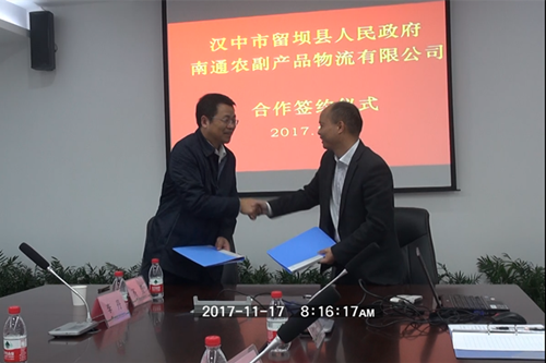 為推動漢中市與南通市之間農產品產銷銜接,讓南通漢中扶貧精準發力,把留壩地理標識等優質農產品引入南通市場,11月17日以留壩縣政府縣長馬宏偉為團長的考察團實地考察了通農物流,并與通農物流簽署合作框架協議書。