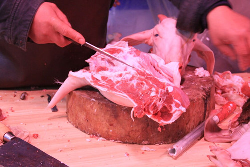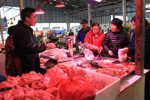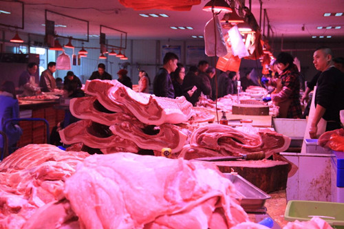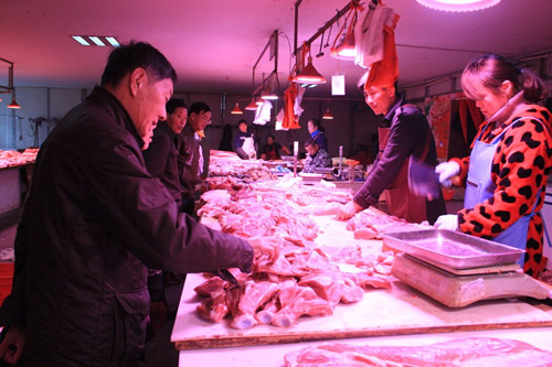 “冬季生豬養殖成本增加,成活率降低,仔豬飼料價格貴,市民對生豬需求旺盛,導致生豬收購價格上漲。”通農物流分割肉交易區負責人潘繼東介紹,目前,豬肉夾心9.5元/斤、腿肉9.5元/斤、五花10.5元/斤、前蹄13元/斤左右,“預計到12月中上旬,豬肉價格會持續上漲。”