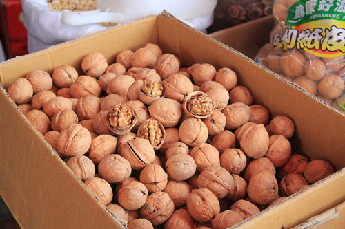 新上市的核桃價格略有下跌。在保興棗業(yè),特級新疆紙皮核桃皮薄果肉滿,去年零售18元/斤,今年只賣15元/斤,價格下跌兩成。而特級新疆若羌棗基本也在15元/斤。攤主王老板解釋說:“現(xiàn)在人們的生活條件好了,越來越懂得養(yǎng)生,種植戶拿準了消費者的這種心理,加大了棗樹、核桃樹種植力度,產(chǎn)量一高,價格自然就降下來了?!?br /> 冬季進補不少市民還會選擇藥補。記者在干貨區(qū)神農(nóng)養(yǎng)身商行了解到,近期前來選購滋補藥材的市民明顯增多。以批發(fā)價為例:云南文山三七180-800元/斤,加拿大西洋參800-1500元/斤,安徽鐵皮石斛400-3000元/斤,朝鮮高麗參800元左右/斤,云南天麻200元左右/斤。這些進補藥材大多具有活血化瘀、降低血脂,補血補氣等功效,搭配食用效果更顯著。專家提醒:冬季進補不能盲從,要根據(jù)個體的情況而定,如形體偏瘦、陰虛者應(yīng)以淡補為主,身體豐腴,宜采用甘溫食物。(吳珍鳳 李倩楠)
