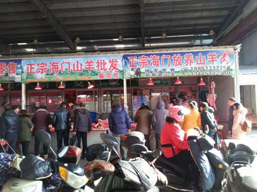 目前通農物流肉類區羊肉零售區域正逢銷售旺季,你可以買到放心滿意的羊肉。(安保部 于海燕)