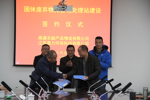 隨著通農(nóng)物流經(jīng)營交易規(guī)模與范圍的逐步擴(kuò)大,市場內(nèi)各類垃圾產(chǎn)生量也逐漸增多,為進(jìn)一步優(yōu)化市場環(huán)境,通農(nóng)物流在2017年年底就將垃圾處理站建設(shè)納入計(jì)劃,今年3月6日,在通農(nóng)物流展銷樓5樓會議室,南通農(nóng)副產(chǎn)品物流有限公司副總經(jīng)理闞君成與江蘇嘉力環(huán)保有限公司總經(jīng)理?xiàng)钛复砗献麟p方正式簽署了“固體廢棄物無害化處理站建設(shè)”的合作協(xié)議。崇川區(qū)區(qū)委常委張祖春、南京工業(yè)大學(xué)教授趙龍章和通農(nóng)物流總經(jīng)理曹俊等相關(guān)領(lǐng)導(dǎo)見證了此次簽約儀式。