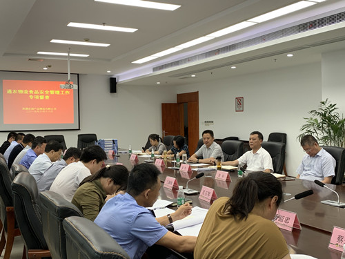 6月18日,市市場監(jiān)督管理局食品經(jīng)營處處長蔣寶祥等一行蒞臨通農(nóng)物流,對2019年上半年食品安全管理工作進(jìn)行專項(xiàng)督查。通農(nóng)物流總經(jīng)理徐徑、副總經(jīng)理姜浩等陪同。