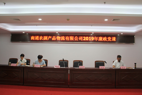 6月18日下午,通農物流黨總支組織公司班組長及以上人員、全體黨員在綜合展銷樓4樓會議室召開2019年廉政黨課。