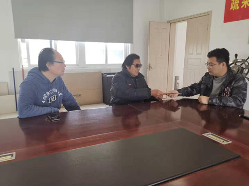 11月21日上午,蔬菜部呂經理代表蔬菜部職工將愛心捐款交到紀師傅手上,紀師傅感動得緊緊握住呂經理的手,連聲感謝。