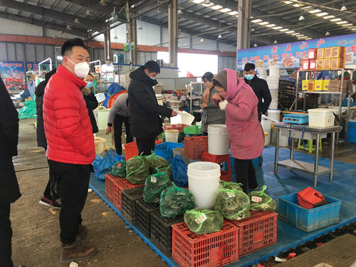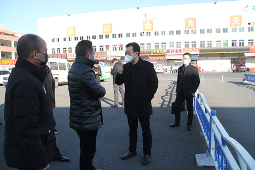 1月29日上午,黨總支書(shū)記、總經(jīng)理徐徑和副總經(jīng)理姜浩檢查市場(chǎng),督促經(jīng)營(yíng)戶佩戴口罩,注意自我防護(hù)。
