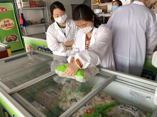 我檢測中心員工針對發現的問題,當場提出了具體整改意見。要求商戶將不規范的預包裝食品立即下架,溯源并通知其整改,進一步督促各經營戶加強食品安全意識,更加完善其經營環境衛生狀況。同時,疫情期間,由于批發市場的特殊性,更是要督促各經營戶在營業期間全程佩戴好的口罩手套,加強自身防范。
