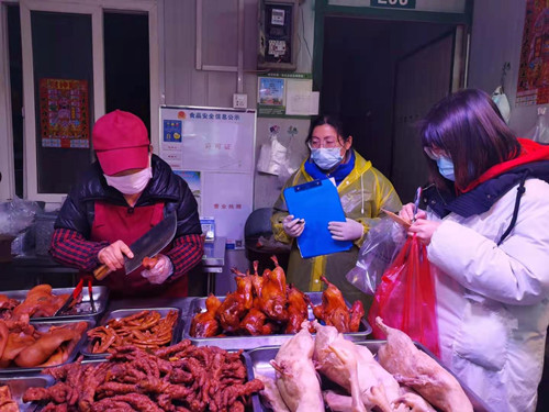 根據(jù)公司相關(guān)要求,春節(jié)前期水產(chǎn)交易區(qū)將對(duì)重點(diǎn)品種(熟食、魚、蝦)加大抽檢力度、增加抽檢頻率,確保水產(chǎn)(肉類)食品銷售安全。1月27日,水產(chǎn)區(qū)食品安全員和現(xiàn)場(chǎng)管理人陪同食安部檢測(cè)人員對(duì)熟食區(qū)進(jìn)行全面抽檢,針對(duì)熟食區(qū)牛雜、牛腸、牛肚、牛頭肉、豬頭肉這五種亞硝酸鹽容易超標(biāo)的重點(diǎn)品種進(jìn)行每戶必抽,其他熟食制品隨機(jī)抽檢,增加品種和頻率,確保熟食抽檢無(wú)死角全覆蓋。
