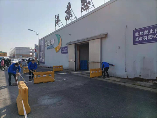 此次清掃活動以惠生區域的車輛環境衛生秩序為主,工作人員手持掃帚、簸箕、警戒線等開展環境衛生工作。一是清理惠生冷庫區域堆積的雜物和廢舊垃圾;二是集中清理惠生門口區域的瓶罐及紙屑垃圾;三是集中更換所有黃色水柱警戒線。在清掃過程中,因車流量較多,個別外來車輛存在亂停放的現象,部分警戒線也被車輛損壞。通過與個別車主溝通亂停車輛的現象后,工作人員一一將所有警戒線進行了更換,黃色水柱的位置也適當的進行了調整,同時將地面所有的垃圾進行了清掃。