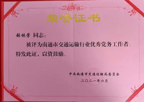 在偉大的中國(guó)共產(chǎn)黨100周年華誕之際,通農(nóng)物流喜訊連連。通農(nóng)物流第二黨支部獲得“江蘇省交通運(yùn)輸行業(yè)先進(jìn)黨支部”榮譽(yù)稱號(hào),通農(nóng)物流黨總支獲得“南通市交通運(yùn)輸行業(yè)先進(jìn)基層黨組織”榮譽(yù)稱號(hào),通農(nóng)物流陳斌、馮曉逸、王倩同志獲得“南通市交通運(yùn)輸行業(yè)優(yōu)秀共產(chǎn)黨員”榮譽(yù)稱號(hào),通農(nóng)物流張林芳同志獲得“南通市交通運(yùn)輸行業(yè)優(yōu)秀黨務(wù)工作者”榮譽(yù)稱號(hào)。在集團(tuán)黨委的帶領(lǐng)下,通農(nóng)物流黨總支充分發(fā)揮戰(zhàn)斗堡壘作用,讓黨旗在基層一線高高飄揚(yáng):
