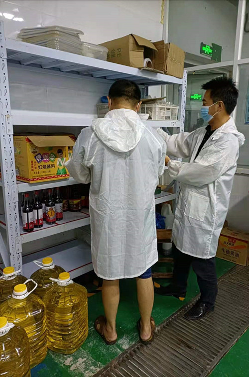 本次檢查主要以食品安全、用電安全兩方面為主,針對以往檢查中安全問題頻次高的商戶進(jìn)行重點(diǎn)檢查。曹經(jīng)理、陸主辦及工作人員先后對康弘餐飲、新鮮達(dá)及云龍配送三家商戶倉庫內(nèi)進(jìn)行檢查。經(jīng)檢查發(fā)現(xiàn)用電安全方面,商戶仍存在室內(nèi)充電的現(xiàn)象;食品安全方面,個(gè)別商戶存在食材過期存放未及時(shí)處置的現(xiàn)象。針對該現(xiàn)象,曹經(jīng)理對商戶進(jìn)行現(xiàn)場安全教育并當(dāng)即采取措施,要求工作人員將過期的食材進(jìn)行清空,暫且放在監(jiān)管倉庫內(nèi),同時(shí)根據(jù)安全管理規(guī)定采取相應(yīng)的處罰。另外,工作人員在檢查商戶索票索證方面,發(fā)現(xiàn)仍然還存在部分票據(jù)票證不齊全、供貨商票據(jù)信息未填完整、印章未蓋的情況,對此進(jìn)行現(xiàn)場口頭教育并要求將不完整的票據(jù)信息及印章于三天內(nèi)補(bǔ)齊,確保索票索證的信息完整。