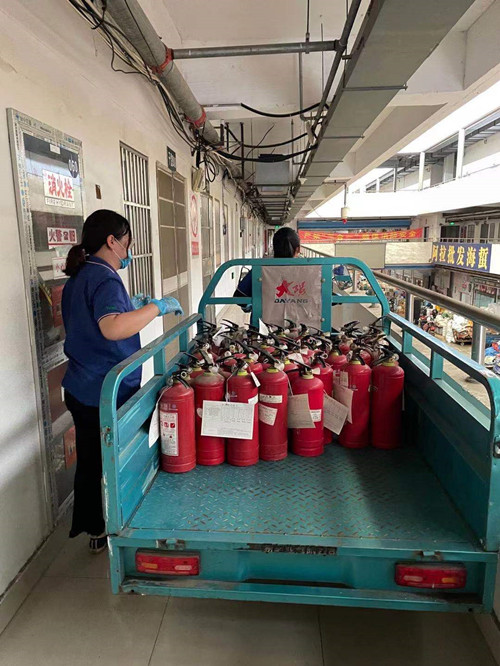 為進(jìn)一步加強(qiáng)消防設(shè)施管理,不斷夯實(shí)安全生產(chǎn)基礎(chǔ),8月以來(lái),干貨區(qū)積極組織各片區(qū)人員對(duì)大廳、服務(wù)樓、商業(yè)樓、展銷樓等區(qū)域的到期滅火器進(jìn)行集中更換,切實(shí)筑牢交易區(qū)消防安全“防火墻”。
