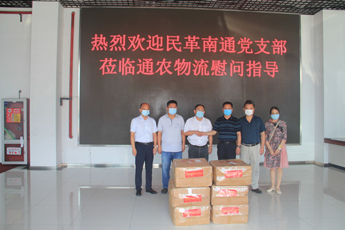 8月26日,民革南通總支部代表陳玉冬,民革一支部主委、集團公司副總經理李冰一行來通農物流進行慰問,并向通農贈送了六箱共計1.5萬只口罩。通農物流總經理徐徑同志、黨總支書記闞君成同志陪同接待。