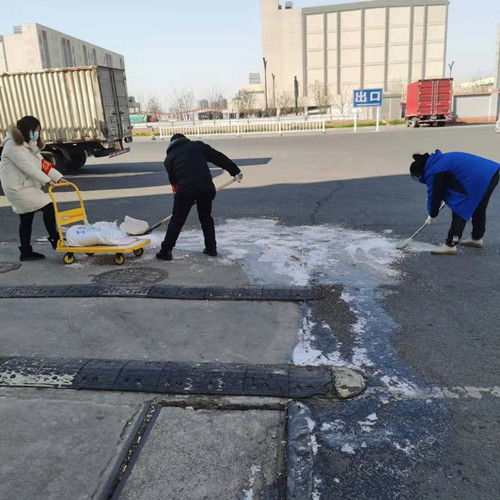 12月27日,配套區域網格化管理人員陶虹巡查時發現,西南門出口處道路有結冰現象,為確保場內車輛及行人的出行安全,我交易區安全主辦陳曉偉立即組織人員對該路面進行快速清理。