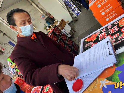 排查中,水果區按照重點片區排查和日常巡查檢查相結合的方式,加大力度開展進口水果排查工作,嚴格執行索證索票,同時簽訂《進口水果銷售安全責任承諾書》。對其中出現的不符合“三專”要求標準或缺少相關證明的進口水果實施登記,并要求經營戶立即下架,等待后續核酸檢測結果,合格后才可繼續銷售。水果區經理范一凡要求各片區責任人每天巡查后,填寫《進口水果疫情防控檢查表》,如實做好記錄。