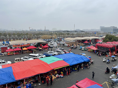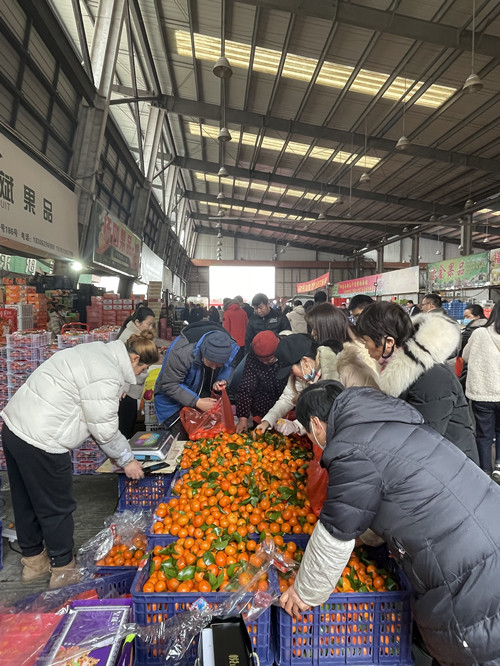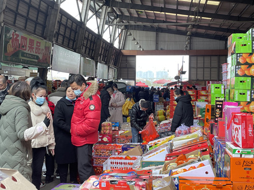 春節(jié)臨近,家家戶戶都著手準備年貨,市場上人來人往,購買水果的市民絡(luò)繹不絕。
