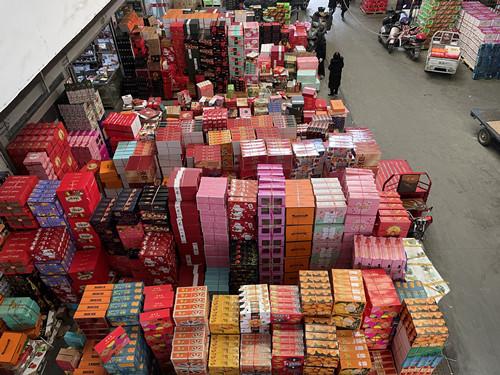 一眼望去,贛南臍橙、阿克蘇蘋果、陜西獼猴桃、海南西瓜、廣西砂糖橘、智利車厘子、泰國龍眼……各種水果應(yīng)有盡有,貨源供應(yīng)充足,各種水果精品禮盒摞成小山,目前普通水果銷售火爆,禮盒銷售也漸入佳境。