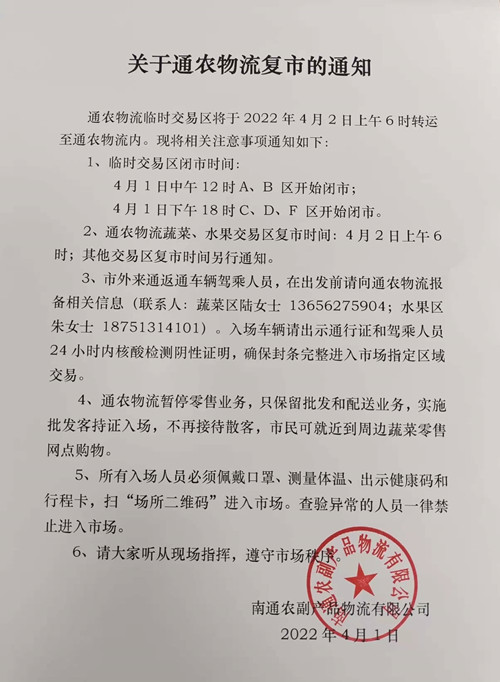 關于通農物流復市的通知