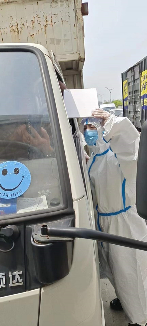疫情就是命令,防控就是責任。為打贏疫情防控攻堅戰,配送直營部根據公司的要求安排工作人員在南門做好支援工作。疫情防控工作是辛苦的,每日到崗前認真做好防護是她們一天工作的開始。面對每天經過面前的車流人流,她們需要認真負責查驗前往市場車輛人員的健康碼、行程碼及24小時核酸檢測報告,要做到不漏一人,不漏一項。在這特殊時期,疫情防控是首要任務,工作人員需要對各項日常工作進行時間上的安排,在做好南門支援工作的同時日常工作也不能松懈。