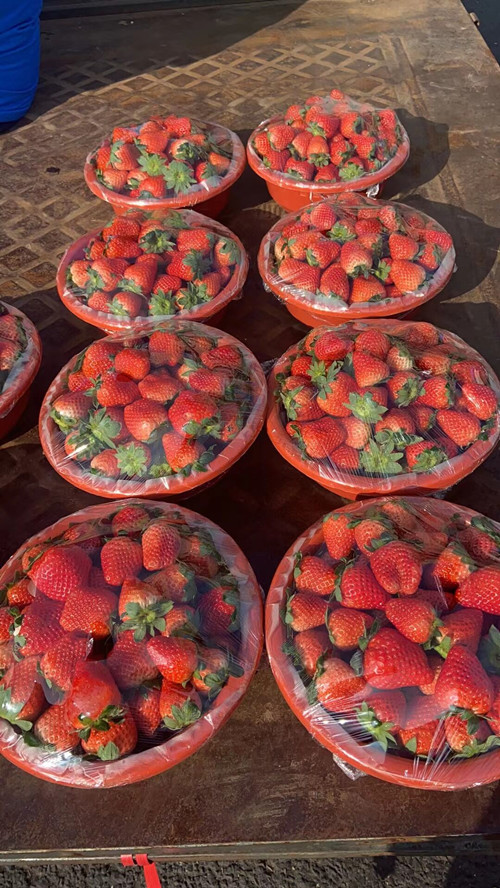 寒冬時節,正值草莓陸續成熟。從11月中上旬開始,就有少量本地草莓在水果交易區內上市。一顆顆鮮紅的草莓格外惹人喜愛。一盆草莓重量在3斤左右,價格基本在22元/斤左右。