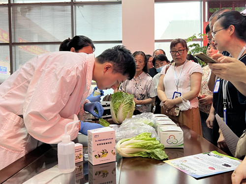 活動現場設置了“你點我檢”快檢點,現場快檢農產品,不少經營戶和消費者拿著自己的大白菜、芹菜、茄子等前來檢測,讓消費者和經營戶近距離觀看檢測過程,成為食品安全的參與者、見證者和監督者。部分經營戶和消費者對農藥殘留快篩檢測試劑盒很感興趣,他們表示想在購買或進貨前先用試劑盒檢測,避免買到農藥殘留超標的菜品。“你點我檢”活動拉近了經營戶、消費者與農產品檢驗檢測的距離,進一步提高了食品安全防范意識,增強了廣大群眾食品安全自我保護能力。