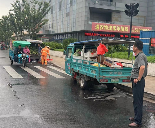 針對近期市場西門出口靜海大道出現多處流動攤販,嚴重影響西門出口的通行秩序,而且存在一定交通安全隱患的情況。為有效遏制流動攤販占道經營現象,7月10日起,安保部開展流動攤販專項整治行動。加強巡邏,提高管理效率,及時勸導流動攤販規范、文明、守法經營,勸阻占道經營行為,對不聽從勸告、屢教不改的向有關部門進行舉報。通過近期的整治,西門出口的交通通行秩序和環境衛生得到明顯改善。