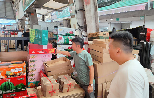 8月2日,水果區副經理張曉建帶隊對水果交易區內的八個大棚和兩個大廳開展消防安全專項檢查。