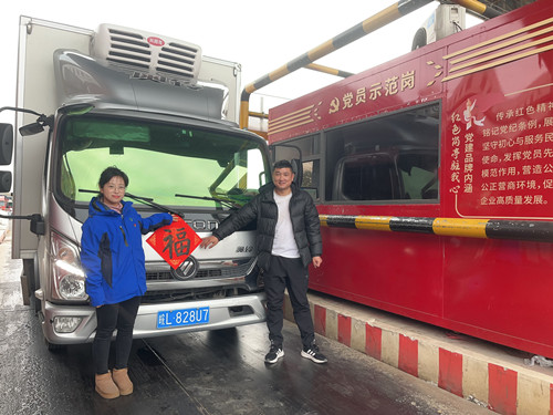 在通農(nóng)物流蔬菜區(qū)入口處的黨員示范崗,一場溫暖人心的活動(dòng)正在悄然展開。蔬菜區(qū)黨員們正在為進(jìn)場運(yùn)送蔬菜的車輛貼上“福”字,送上新春的美好祝福。“紅色崗?fù)ぁ钡狞h員們?cè)缭鐪?zhǔn)備好了喜慶的“福”字,當(dāng)一輛輛貨車緩緩駛?cè)耄h員們邊幫忙打開車門,邊向辛苦的長途司機(jī)師傅致以新春的問候。短暫的停留間隙,司機(jī)們臉上都洋溢著驚喜與感動(dòng),感受到了濃濃的年味和市場的關(guān)懷。“福字貼在車上,新年的氛圍一下子就來了,心里暖呼呼的。”來自山東的駕駛員張師傅笑著說道。
