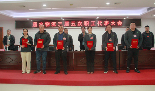 會上,通農(nóng)物流副總經(jīng)理邵飛同志宣讀了對2024年通農(nóng)物流6個先進(jìn)班組、30名先進(jìn)工作者的表彰通報,主席臺領(lǐng)導(dǎo)為獲獎部門和個人進(jìn)行頒獎。